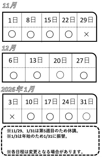 稽古予定表(2025年11月~2026年1月)更新! -